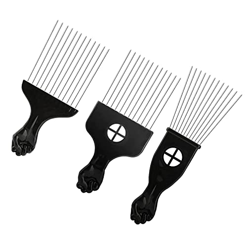 LUTER 3pcs Pettine Afro Pettine Capelli Denti Larghi Per Capelli Ricci Pettini In Metallo Per Parrucca Da Parrucchiere Strumento Per Lo Styling Delle Trecce (Nero)