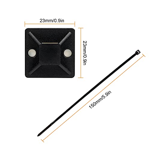 Contenuto del pacchetto: riceverai 50 pezzi ADESIVE ADESIVE ACCUCCIO ADESIVO MISURA 2.3 x 2.3 cm e 100 pezzi Cable Ties, 0,3 x 15 cm.