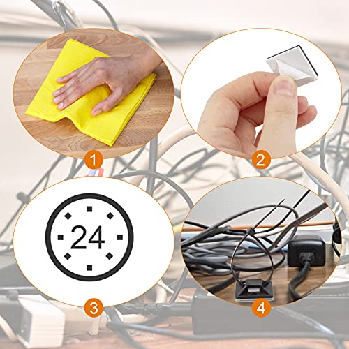 Facile da usare: i supporti adesivi della cravatta a zip sono fissati da un forte adesivo con un'eccellente durata, senza strumenti, nessuna perforazione, basta sbucciare il livello protettivo dall'adesivo e posizionarlo su una superficie pulita, piana e asciutta, premere per circa 10secondi, quindi passare la cravatta del cavo attraverso il foro, bloccando i denti nella testina del cavo.
