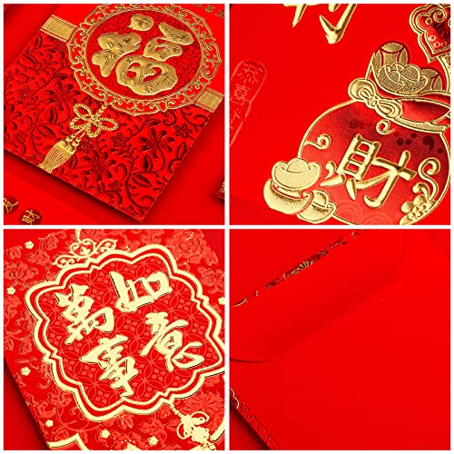 LUTER 36 Pezzi Buste Rosse Cinesi, Capodanno Hong Bao Buste Rosse con Motivi Cinesi Classici e Parole di Benedizione Tasche Portafortuna per la Festa di Primavera