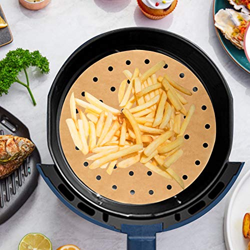 LUTER 120 Pezzi Di Carta Pergamena Con Rivestimento Per Friggitrice Ad Aria Da 21.6Cm Carta Pergamena Perforata Non Sbiancata Carta Per Vapore Rotonda