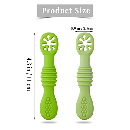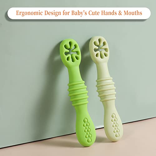 LUTER 2 pezzi Cucchiai in Silicone per Bambini, Prima Fase Cucchiai per Bambini Baby Spoon Silicone Cucchiaio Alimentatore Neonato per Bambini di Età Superiore ai 6 Mesi (Verde Erba, Verde Chiaro)