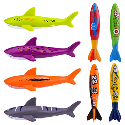 LUTER 8 Pezzi Set di Giocattoli per Immersione, Giocattoli Subacquei Giocattoli da Piscina Alianti Subacquei Giocattoli per Squali da Nuoto per Bambini da 8 a 12 Anni Ragazzi Ragazze (2 Forme)