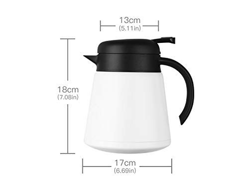 Luvan 0.8L Caraffa Termica, in Acciaio Inox 18/10 brocca/Thermos a Doppia Parete, isolata sotto Vuoto, con Coperchio a Pressione,conservazione a Freddo o Caldo per più di 12 ore(Bianco)