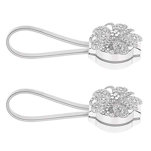 LUVODI - 2 fermatende magnetici a forma di fiore, con strass, clip decorative per tende e pannelli oscuranti in voile, decorazione per la casa