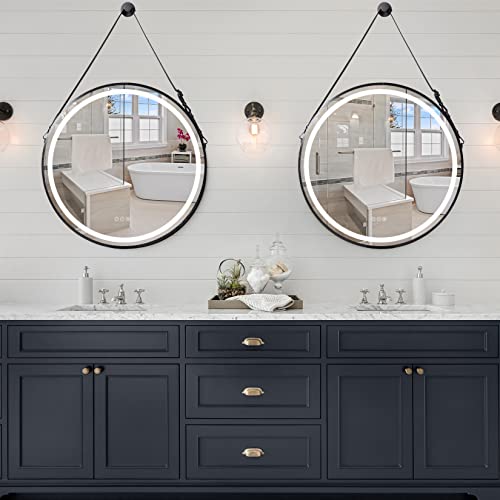 LUVODI Specchio Rotondo Bagno da Parete: 60cm Specchio Bagno LED Touch con Cinghia Regolabile Specchio Bagno con Luci Led - Specchio Rotondo con Cornice Nero Tondo Specchio Decorativo industriale