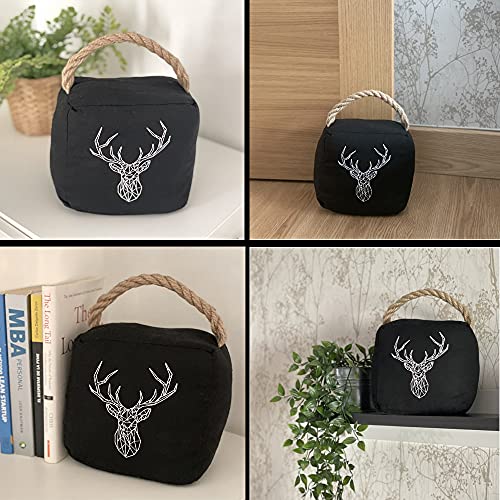 LUXANCO Fermaporta Pavimento con Disegno Nordico di Cervo - Fermaporta Stoffa - Cervo Decorazione - Cuscino Cervo - Ferma porte - Fermalibri Cervo (Nero)
