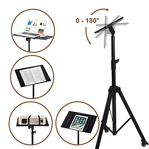 LUXBURG Supporto da pavimento per proiettore, laptop con pallet per mouse e supporto per telefono, altezza regolabile da 110 a 210 cm / 43 - 82 pollici, Treppiede multifunzione