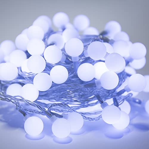 Come è la luce duo di bianchi? Questa ghirlanda è dotata di una catena di 100 lampadine a LED da 18 millimetri di dimensioni, con diverse modalità di bianco (freddo e caldo) e una lunghezza totale di circa 15 metri.