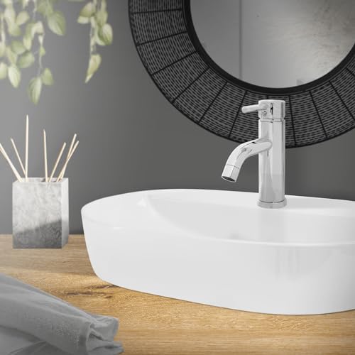 LuxeBath Rubinetto Basso per Lavabo Cromo in Ottone Miscelatore da Bagno Monocomando Regolabile in Temperatura Fredda e Calda Rubinetti per Bagno Rubinetto Bidet Piccolo da Appoggio per Lavandino