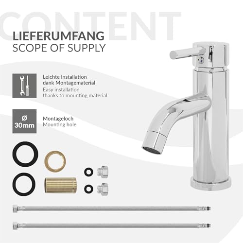 MATERIALI DI ALTA QUALITÀ - Il rubinetto del lavabo è realizzato in ottone massiccio, non facile da corrodere e resistente. La rigorosa tecnologia di cromatura può proteggere il rubinetto dall'usura e dopo un uso prolungato del rubinetto è ancora brillante come nuovo. Il nucleo della valvola in ceramica del rubinetto del bagno fornisce prestazioni di tenuta affidabili e una sensazione di funzionamento regolare, elimina i problemi di rumore e può essere utilizzato per migliaia di cicli.