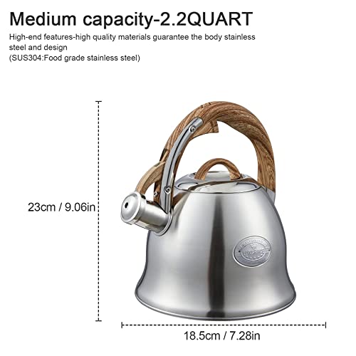 LUXGRACE Bollitore a fischio, 2,2 l, con manico in legno, per cucina, escursioni, picnic, campeggio, fornello a gas