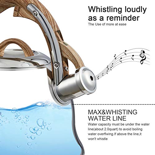 Fischietto perfetto: Il bollitore emette un fischio forte quando l'acqua ha raggiunto un punto di ebollizione. Se ti concentri sui tuoi lavori domestici, film, musica o qualsiasi altra cosa, la teiera fischia per ricordarti che l'acqua bollente e non ti perderai di te. (Consiglio: Basta riempire l'80% della capacità del bollitore, in modo che il bollitore possa fischiare quando l'acqua bollita)