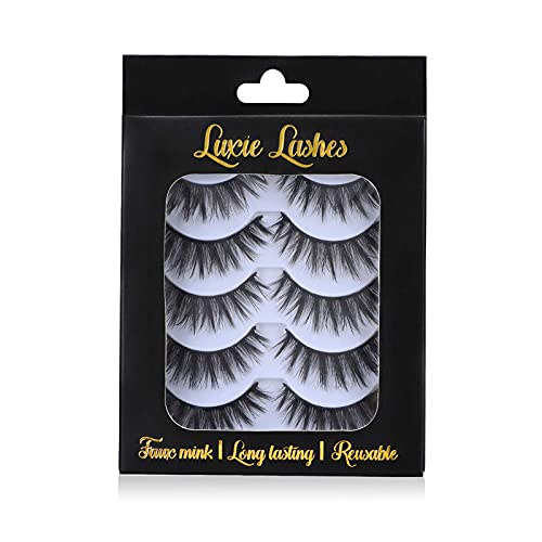 LUXIE LASHES 3D Luxury Fluffy Faux visone Natural Strip Falso ciglia lunghe Multipack - 5 paia Pack Cruelty Free (Rosa)