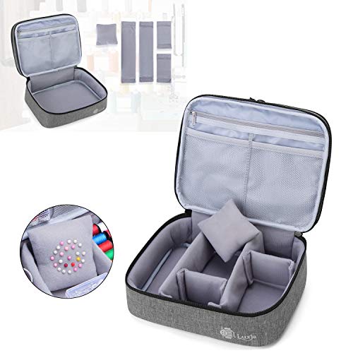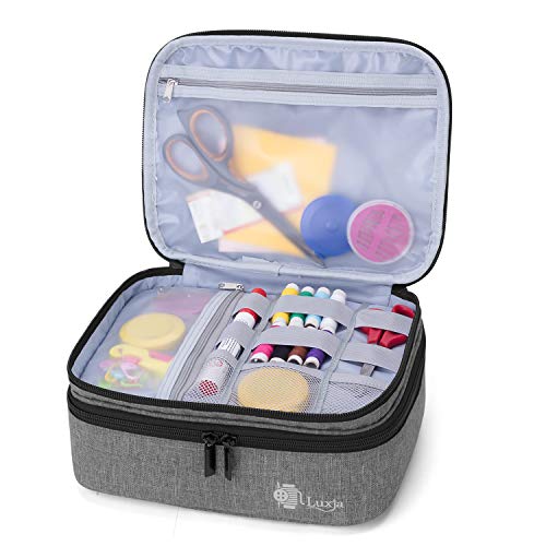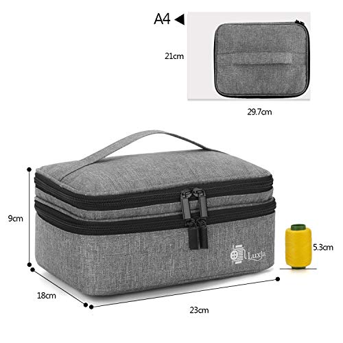 Luxja Doppio Strato Astuccio da Cucito, Borsa per Kit da Cucito, Borsa per Aghi, Filo, Forbici e Altri Accessori da Cucito, Medio/Grigio