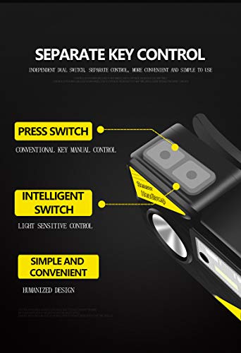 【Lampada frontale a LED con sensore di movimento】 La lampada frontale ti consente di agitare le mani per accendere / spegnere la lampada frontale a LED nelle modalità del sensore di movimento, per risolvere il problema con entrambe le mani occupate o sporche. Inoltre, puoi fare clic sul pulsante della modalità per spegnere la luce, non è più necessario fare clic su tutte le modalità! evitare di sporcarsi la lampada frontale con le mani sporche.