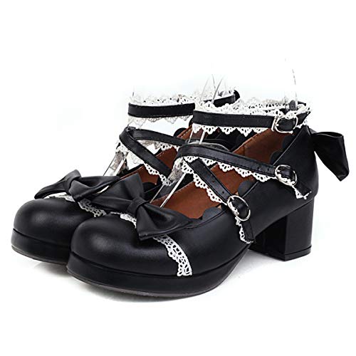 LUXMAX Donna Decolte con Tacco Medio Largo Decollete Cinturino alla Caviglia Fibbia Scarpe Punta Chiusa Moda (Nero) - 42 EU