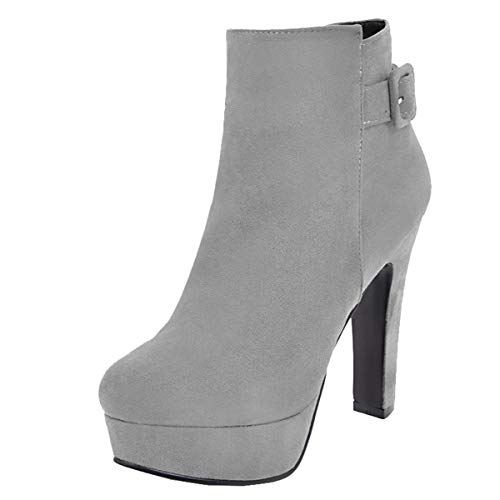 LUXMAX Donna Stivaletti Plateau Tacco Alto Blocco Cerniera Scarpe High Heels Ankle Boots Caviglia Stivali Tacchi Alti (Grigio) - 39 EU