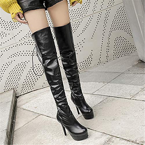 LUXMAX Donna Stivali Sopra Il Ginocchio Plateau Tacco Alto a Spillo Stringati Scarpe Tacchi Alti Eleganti (Nero) - 45 EU