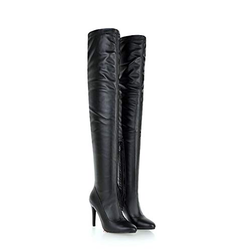 LUXMAX Donna Stivali Alti Sopra Il Ginocchio Tacco Alto Spillo Tacchi a Punta Eleganti Scarpe con Cerniera (Nero) - 44 EU