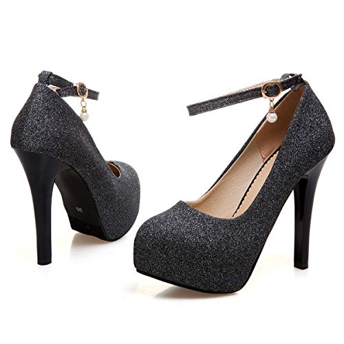 LUXMAX Scarpe Decolte Donna Plateau con Tacco Alto a Spillo Cinturino alla Caviglia Punta Chiusa (Nero) - 39 EU