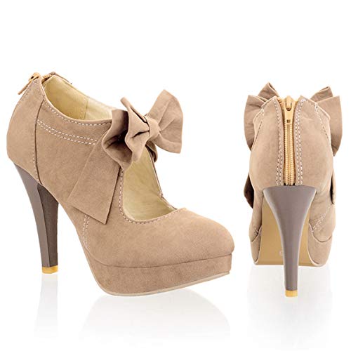 LUXMAX Scarpe Donna Decolte con Tacco Alto a Spillo Plateau Fiocco Elganti (Beige) - 34 EU