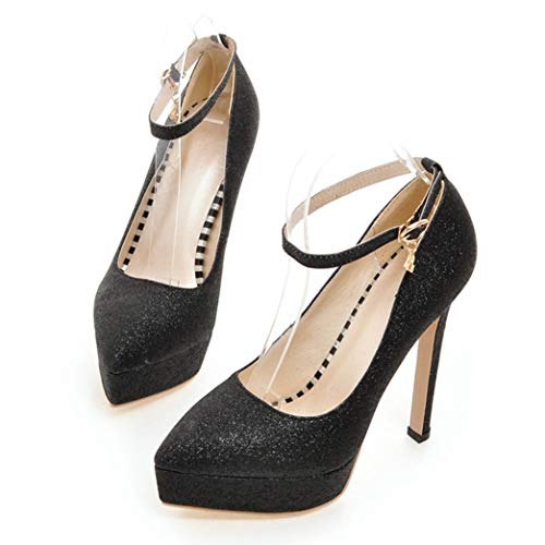 LUXMAX Scarpe Donna Glitter Paillettes Platform Decollete con Tacco Alto Spillo Decolte Eleganti Cinturino Fibbia Tacco Altissimo a Punta (Nero) - 39 EU
