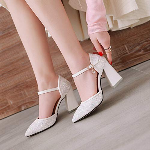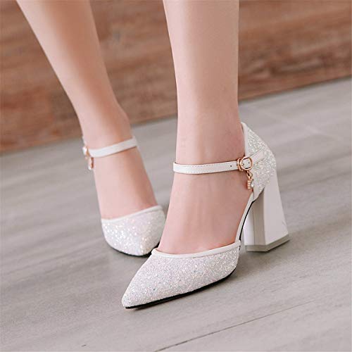 LUXMAX Scarpe Glitter Donna Tacco Alto Decolte con Tacco Largo Decollete Cinturino a Punta con Paillettes Eleganti (Bianco) - 34 EU