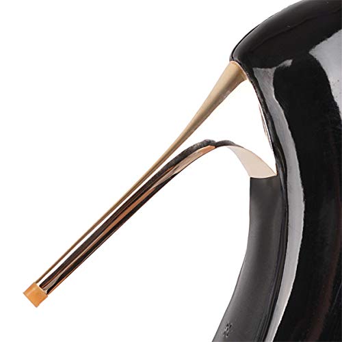 LUXMAX Stivali Alti Fino al Ginocchio Donna Tacco a Spillo Alto di Vernice a Punta Scarpe con Cerniera (Nero) - 38 EU