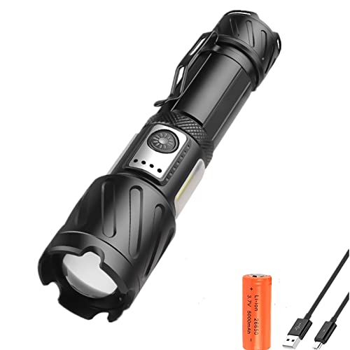 LUXNOVAQ Potente torcia a LED XHP99, torcia portatile ricaricabile a LED XHP99 da 30000 lumen con luce COB, 6 modalità, torcia impermeabile zoomabile per pesca, escursionismo, campeggio