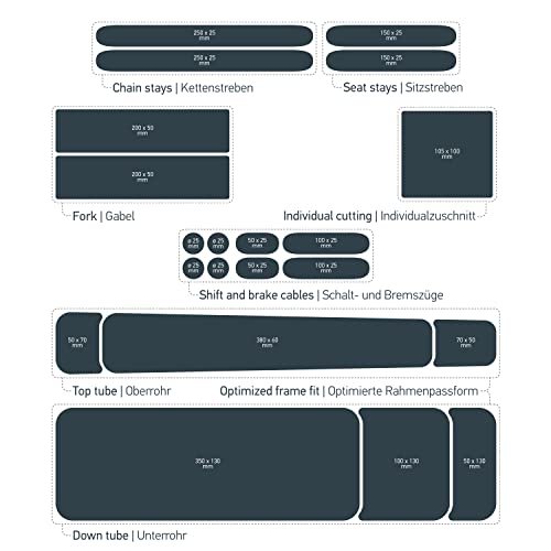EFFICACE COME PELLICOLA PROTETTIVA CONTRO L'IMPATTO DI PIETRE: il telaio di una MTB è esposto a un'enorme usura a causa del pietrisco e della ghiaia durante l'uso in fuoristrada. Proteggi la preziosa vernice della tua bici da scheggiature e danni alla vernice con pellicole adesive appositamente progettate