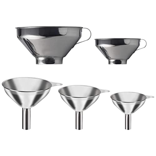 Luxshiny 5Pcs Small Kitchen Funnel Metal Stainless Steel Funnel Canning Funnel Jar Funnel for Filling Bottles Transferring Spice Essential Oil Liquid