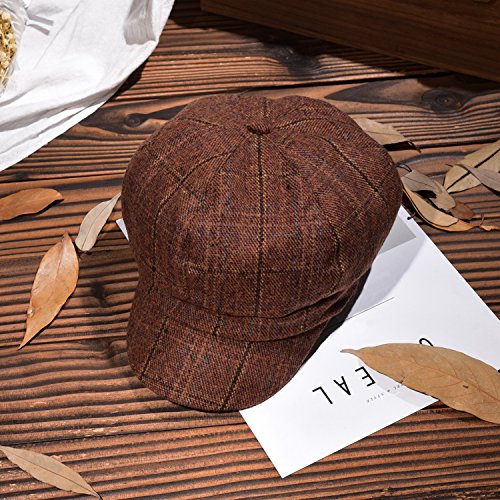 Luxspire Berretto per Donne, Cappello Ottagonale Termico Invernale a Quadrettini retrò per Ragazza Donna, caffè