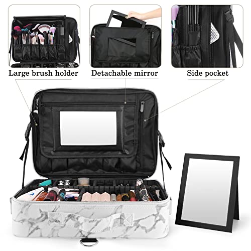 Luxspire Borsa Porta Trucchi Cosmetici con Tasche Multiple, Porta Cosmetici, Tracolla Regolabile, 15.75" x 11.42" x 5.51" (40 x 29 x 14cm), Accessori Cosmetici, Organizzatore Portabile, Marmo Bianco