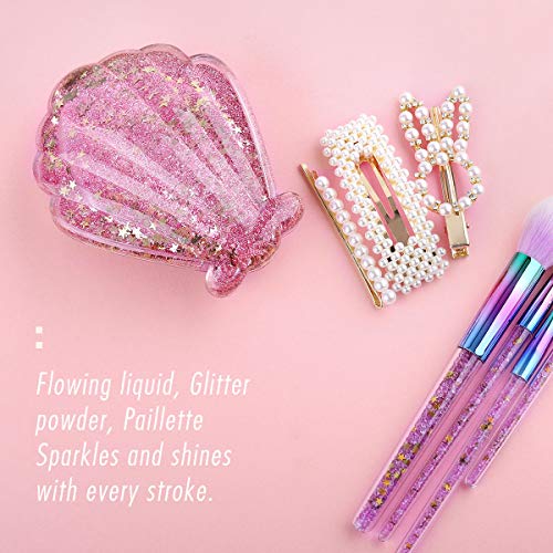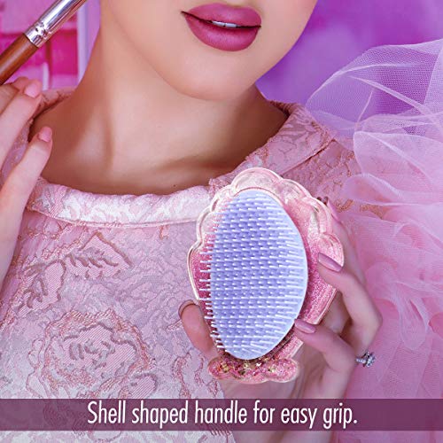 Luxspire Shell Shape Hair Brush, Handheld Hairdressing Anti-static Hair Scalp Massager Shiny Crystal Floating Sequins Hairbrush Comb Women Styling Tools for All Hair Types - Pink