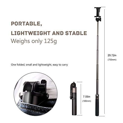 Accessorio da viaggio indispensabile: selfie stick portatile, portatelo sempre con voi. Formato mini (19 cm) e leggero (150 g). È portatile;
