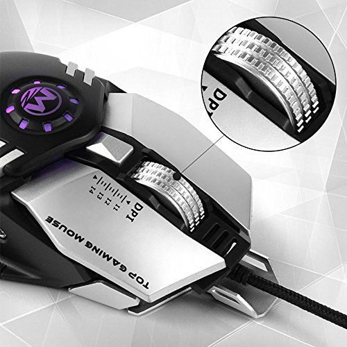 Luxtech Mouse da Gioco Professionale Top Gaming Mouse con i Tasti di Programmazione Ottico LED Nano Ergonomici con Base in Metallo e Risoluzione 200-4800DPI