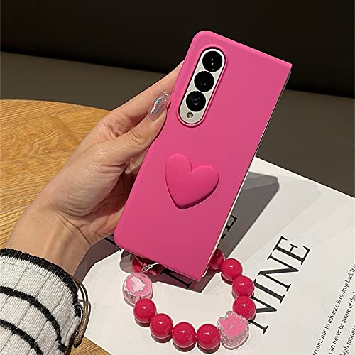 Luxury Rose Red Beads Bracciale Catena 3D Love Heart Custodia Solida per Samsung Galaxy Z Fold4 5G Z Fold 3 Fold 4 Fold3 Cover,A,Per Z Fold 4