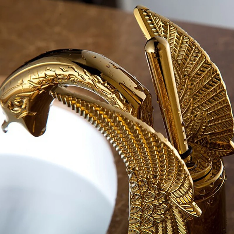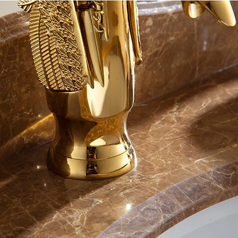 Luxury Copper Hot and Cold Water Taps Swan Faucet Golden Finished Basin Faucet Mixer Taps G1081