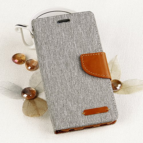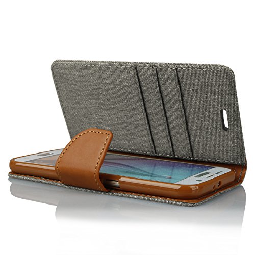 Ego® Luxury Custodia a Libro con pratica funzione di supporto per Samsung Galaxy S6 Flip Case Grigio Chiusura Magnetica Book Cover con Scomparti per Carte di Credito Wallet Stand Custodia Protettiva Canvas