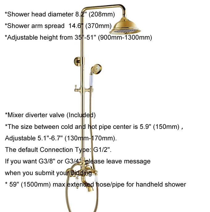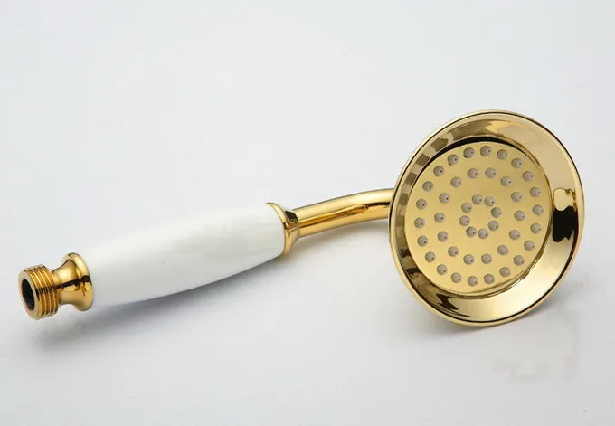 Luxury Polished Gold Color Brass Dual Ceramic Handles Levers Bathroom Round Rainfall Shower Faucet Set Bath Tub Mixer Tap mgf373