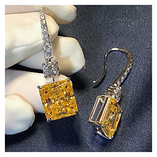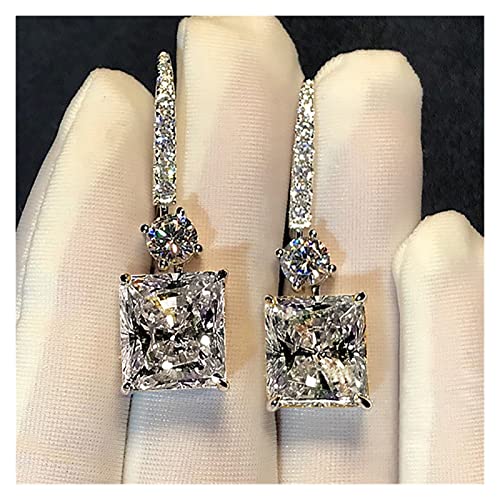 Luxury Square 4CT Diamond CZ orecchino Real 925 Sterling Silver Engagement Wedding Dangle Orecchini for Le Donne Charm Party Gioielli (Gem Color: White)