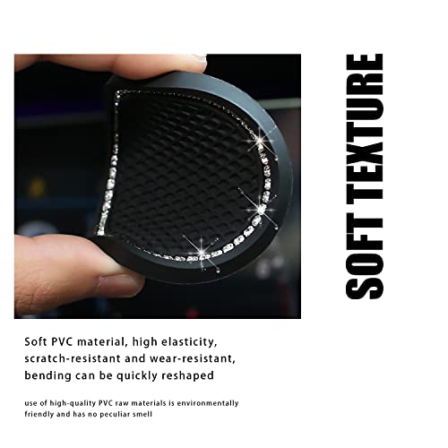 LUXUU 4 Pezzi Sottobicchiere Auto Antiscivolo in Silicone Bling, per Auto Sottobicchiere con Strass di Cristallo Accessori per Interni Auto e 2 Bling Anello di Accensione Auto