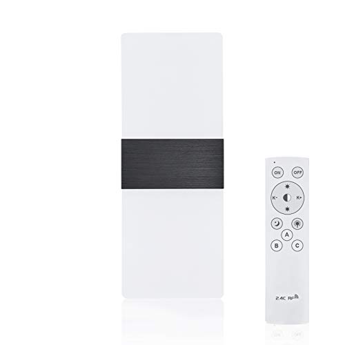 Luxvista Applique a LED dimmerabili con telecomando, 3 temperature di colore 5 W AC 85-265 V Lampada da parete moderna in acrilico nero, perfetta per soggiorno, bagno