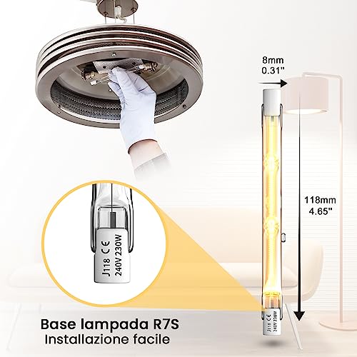 Luxvista R7S Lampada Alogena Lineare 118mm 230W, Dimmerabile J118 Lampadine alogene LED 118mm R7s Tipo J Lampadine alogene lineari bianco caldo 2800K, Confezione da 5