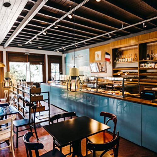 ✅【DESIGN ECCELLENTE】 - La lampada a sospensione a soffitto è realizzata in legno di quercia sulla parte superiore e il paralume è in gabbia di ferro smerigliato nero. È una decorazione ideale per il tuo posto pieno di design classico artistico e retrò.