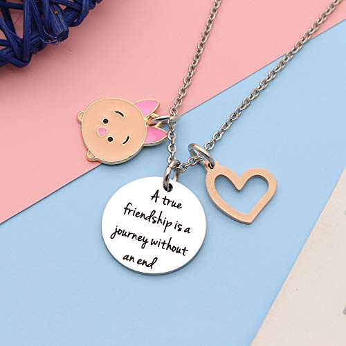 LUXYSODE - Una vera amicizia è un viaggio senza fine collana - graziosa collana di gioielli dell'amicizia regalo per figlia, nipote, amici, ragazze e Acciaio inossidabile (Maialino rosa)