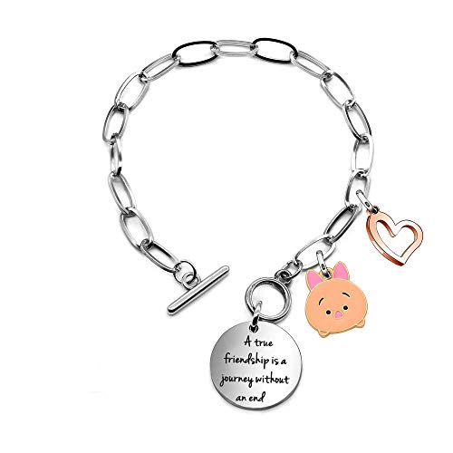 LUXYSODE - Una vera amicizia è un viaggio senza fine - Simpatico braccialetto dell'amicizia regalo per figlia, nipote, amica, ragazze (maialino rosa)