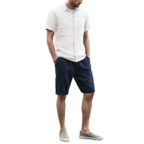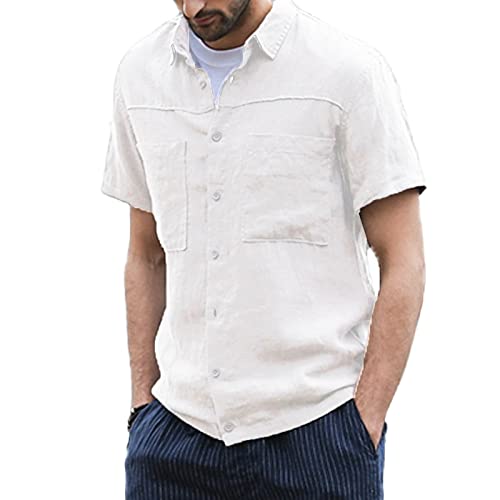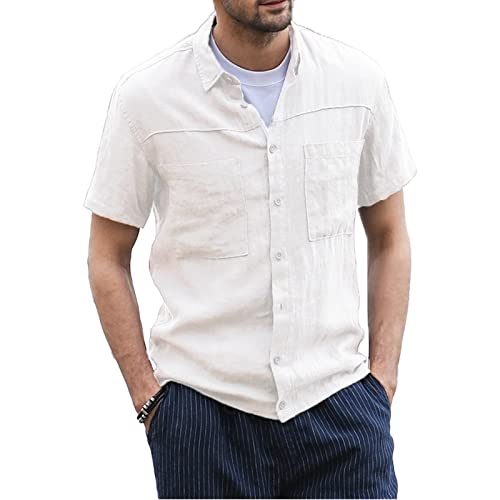 LVCBL Camicia estiva in cotone da uomo a maniche corte, bianco, M