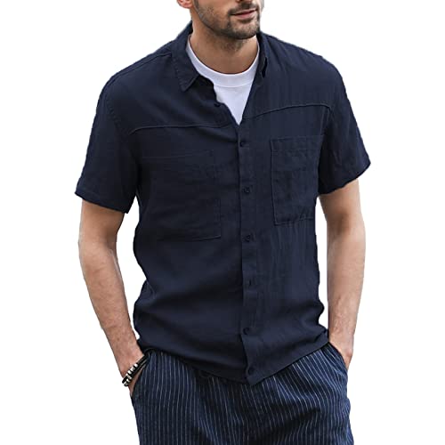 LVCBL Camicia estiva in cotone da uomo a maniche corte, Blu marino, M